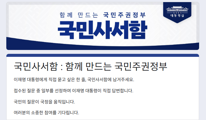 2025년 7월 3일, 대통령실은 ‘국민사서함’ 운영을 전격 개시하며 국민 누구나 대통령에게 직접 목소리를 전할 수 있는