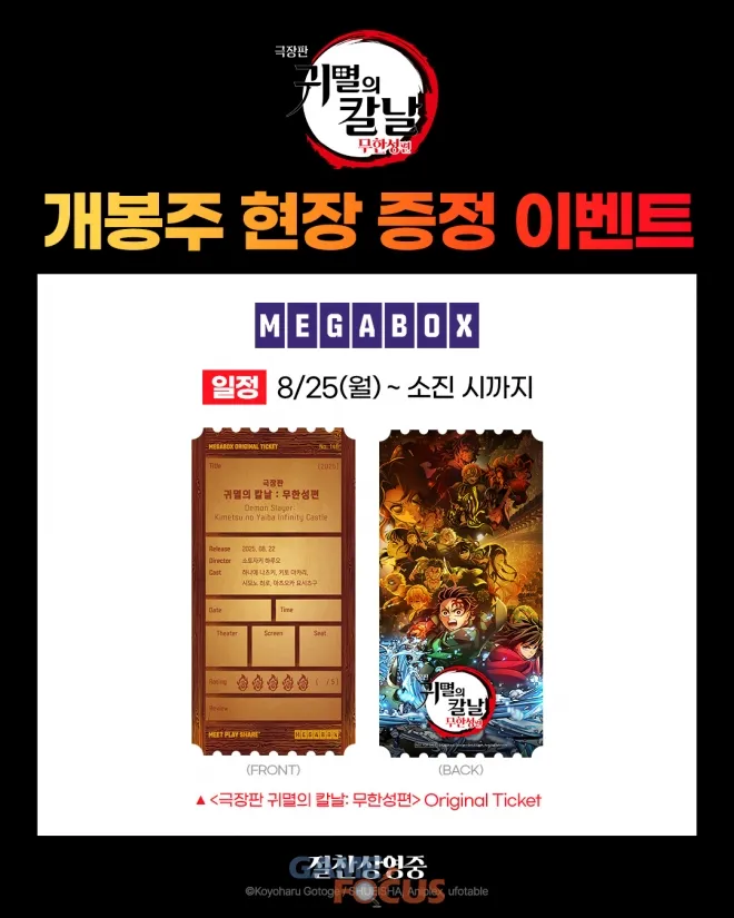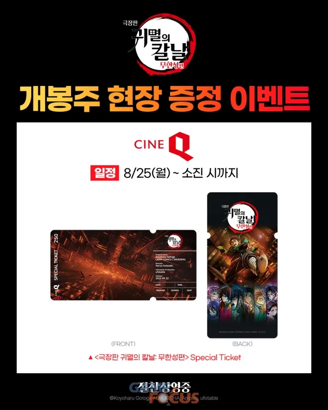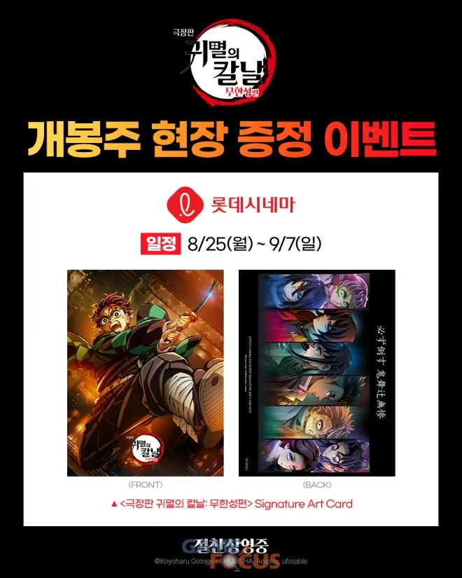 - 롯데시네마 아트카드: “반드시 쓰러뜨린다 키부츠지 무잔” 문구 포함 비주얼.