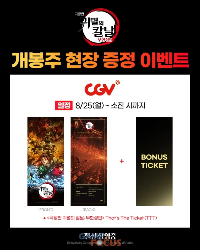- CGV TTT(That’s The Ticket): 메인 비주얼+무한성 이미지를 활용한 보너스 티켓 포함.