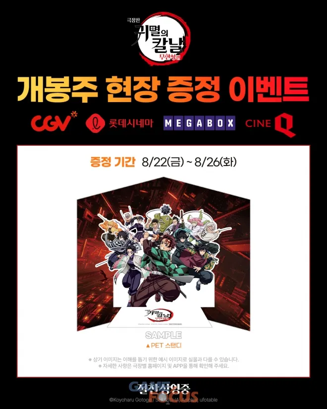 - 공통 특전(1주차): 8/22(금)부터 전국 CGV·롯데시네마·메가박스·씨네Q에서 PET 스탠디 증정(선착순·지점별 소진 상이).