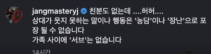 방송 직후 장윤정은 SNS를 통해 관련 기사 캡처와 함께 “상대가 웃지 못하는 말이나 행동은 농담으로 포장될 수 없다. 가족 사이에 ‘서브’는 없다”는 취지의 글을 올리며 불쾌감을 드러냈다. 장윤정의 평소 온건한 이미지에 비춰 드문 강한 어조였고, 여론의 관심이 급격히 커졌다. 이후 장윤정은 사과를 수용했다는 보도도 이어졌다.