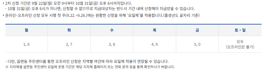 - 온라인 채널은 연휴에도 신청 가능. 주민센터·은행 창구는 휴무이니 온라인을 이용하세요.