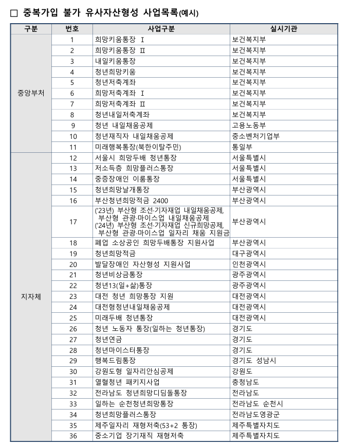 - 유사 자산형성지원사업 참여자(예: 희망키움통장, 청년내일저축계좌 등)