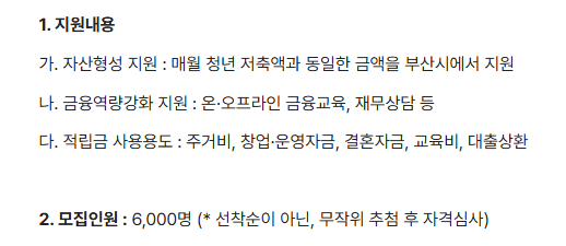부산시의 한 관계자는 “이번 모집 인원 6,000명은 청년층의 체감도를 높이기 위한 과감한 확대”라고 밝혔으며, “더 많은 청년이 자립 기반을 갖추는 데 실질적 도움을 주는 게 목표”라고 말했습니다.