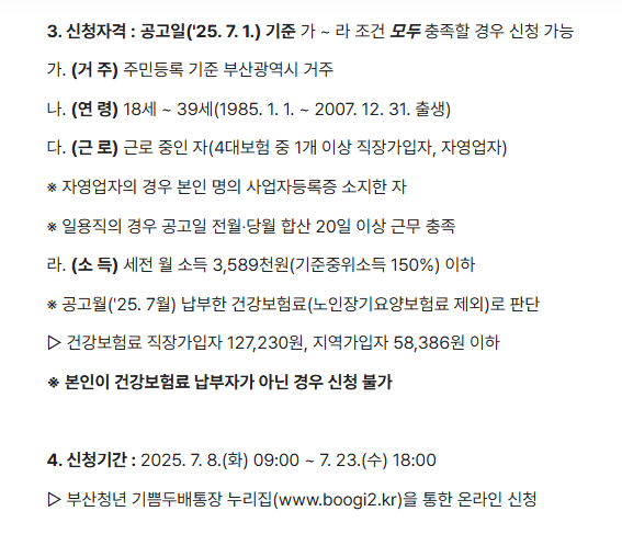 | 거주 요건 | 부산시에 주민등록 기준으로 거주 중 |