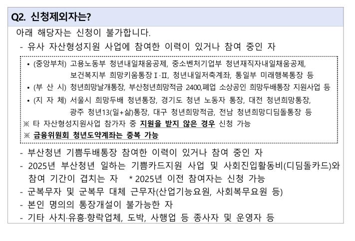 - 2025년 부산청년 일하는 기쁨카드, 사회진입활동비 디딤돌카드 참여자 (단, 2025년 이전 참여자는 가능)
