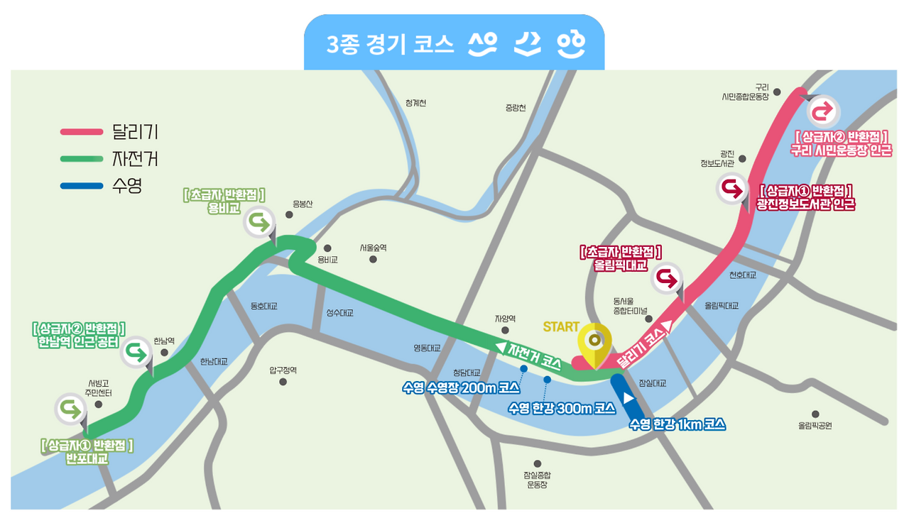 쉬엄쉬엄 한강 3종 축제 - 3종 경기 운영코스 및 방식
