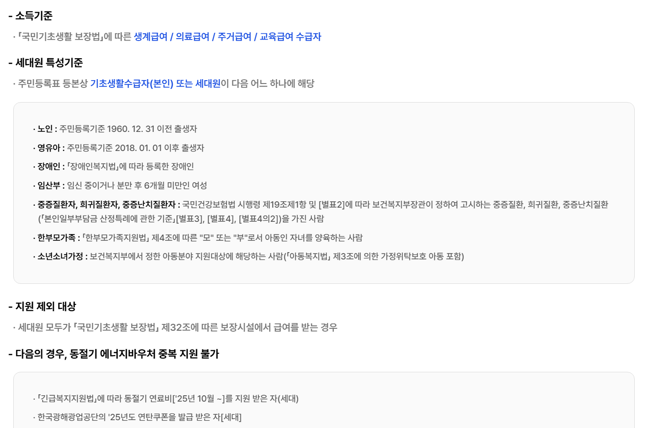 2. 2025 에너지 바우처 지원 대상 및 조건