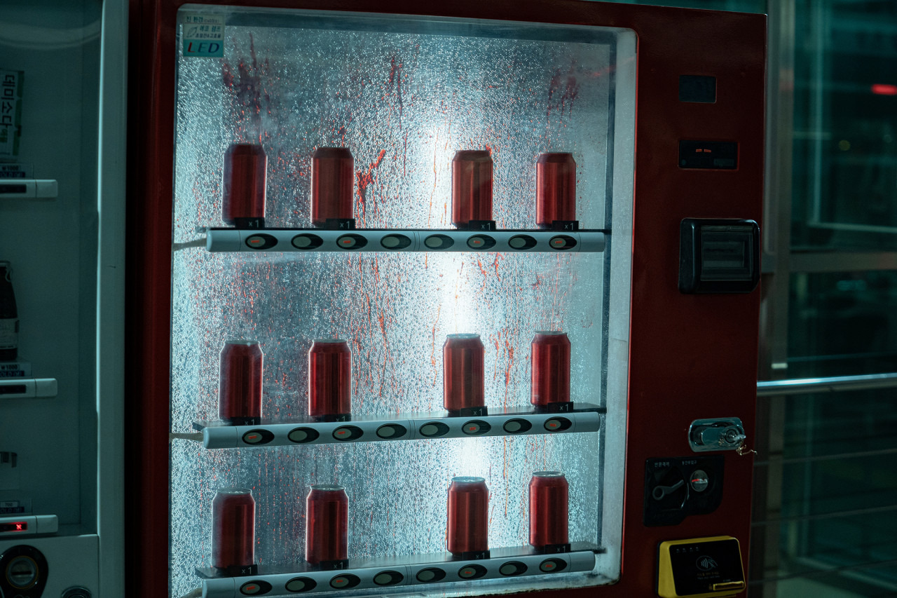 - 컬러 톤: 전체적으로 무채색 톤 + 붉은 조명 위주로 구성돼 있으며, 후반부로 갈수록 색조가 더욱 단색적이고 환각적으로 변합니다.