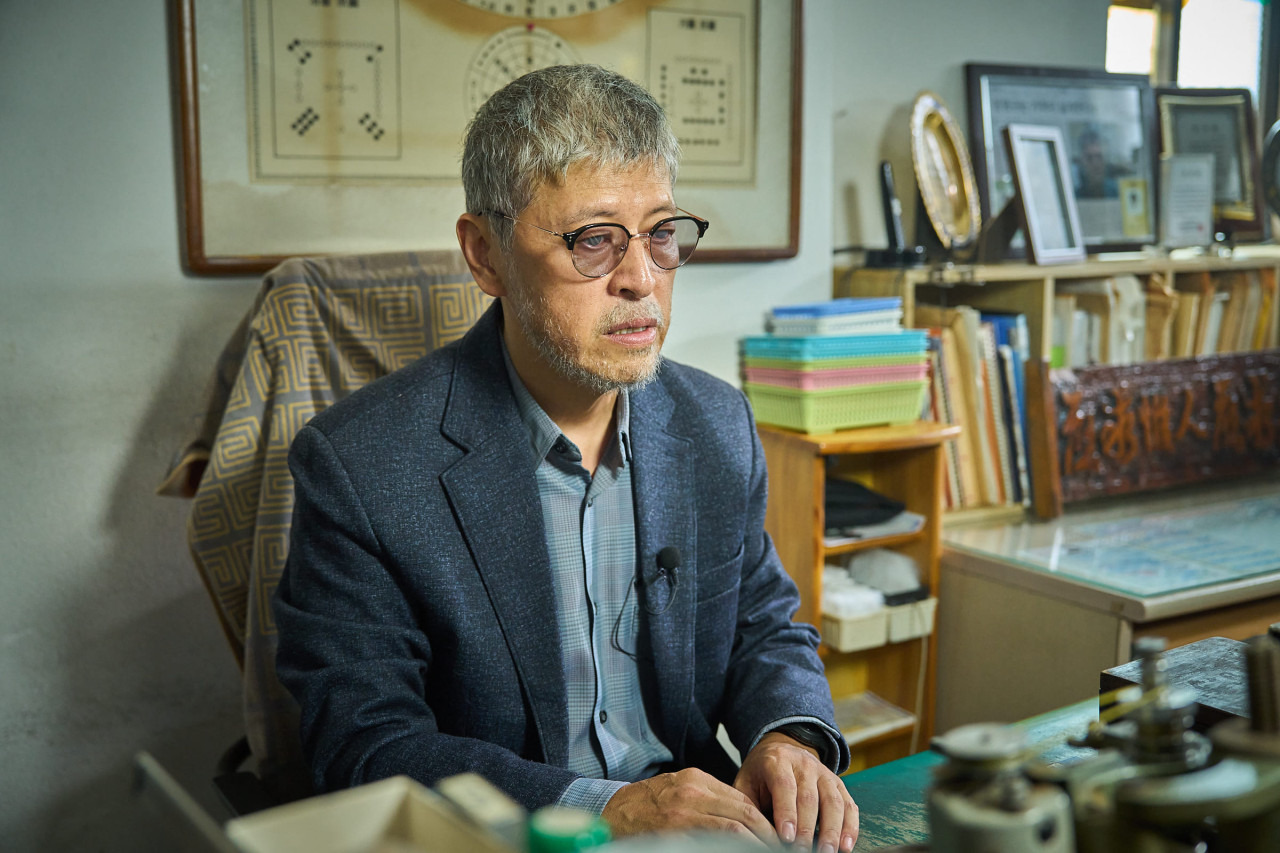 앞을 보지 못하지만 전각의 대가로 불리는 장인. 그의 고요한 말 한마디, 손끝의 촉은 영화의 윤리와 미학을 이끄는 나침반입니다. “못 보는 사람이 아름다움을 보지 못한다는 건 오해”라는 인용으로 영화의 결을 규정합니다.