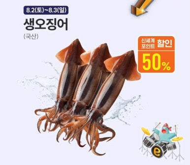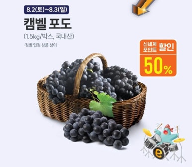 | 캠벨 포도 (1.5kg) / 생오징어 | 반값 할인 | 포인트 적립 시 |