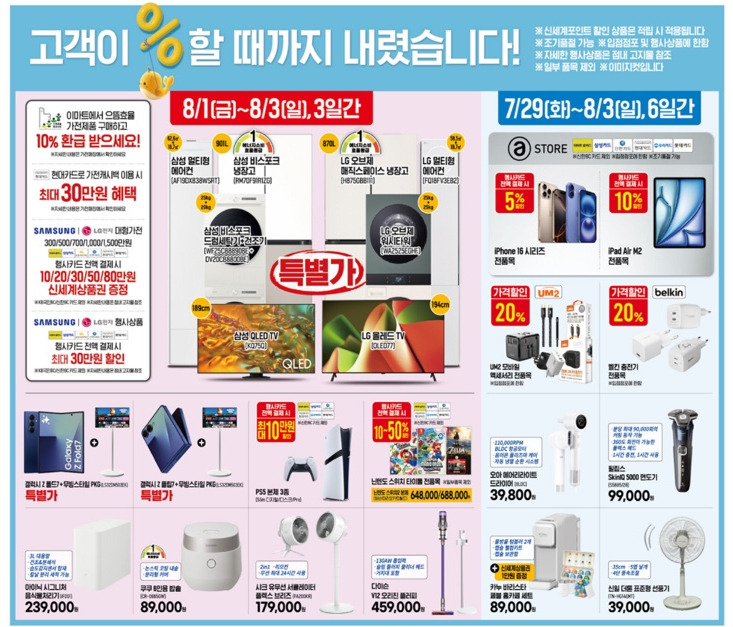 | 7/31~8/1 (2일) | 화장지 (30m×30롤) | 6,000원 할인 → 8,980원 | 행사카드 결제 |