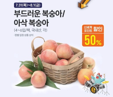 | 복숭아 (4~6입 팩) | 약 50% 할인 | 포인트 적립 시 | |