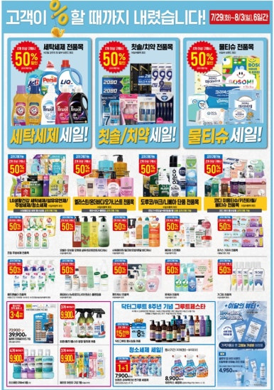 - 전 품목 50% 할인, 1인당 1통 한정