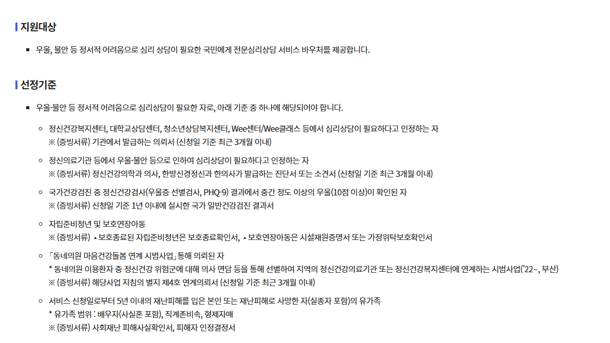 많은 분들이 "정신건강 상담이 무료로 제공된다"고 알고 있지만, 실제로는 바우처 방식입니다.