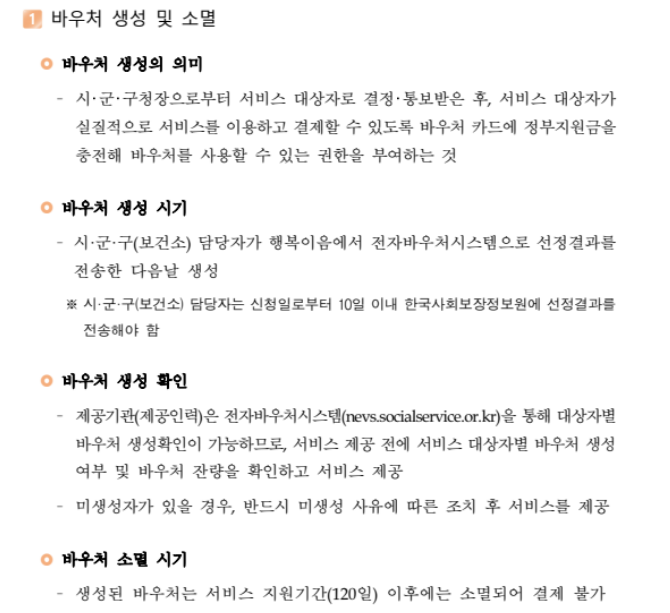 ✅ 본인부담금은 국민행복카드 또는 지정 바우처카드로 결제해야 하며, 현금 불가입니다.