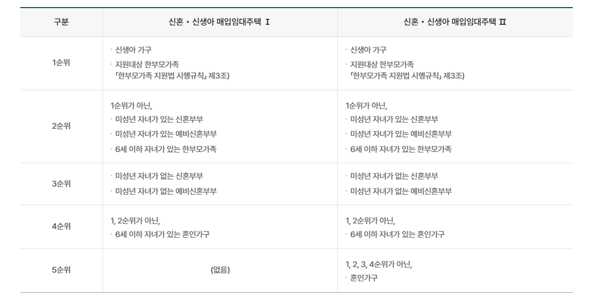 2. 청년·신혼·신생아 가구 매입임대주택 신청자격 및 우선순위