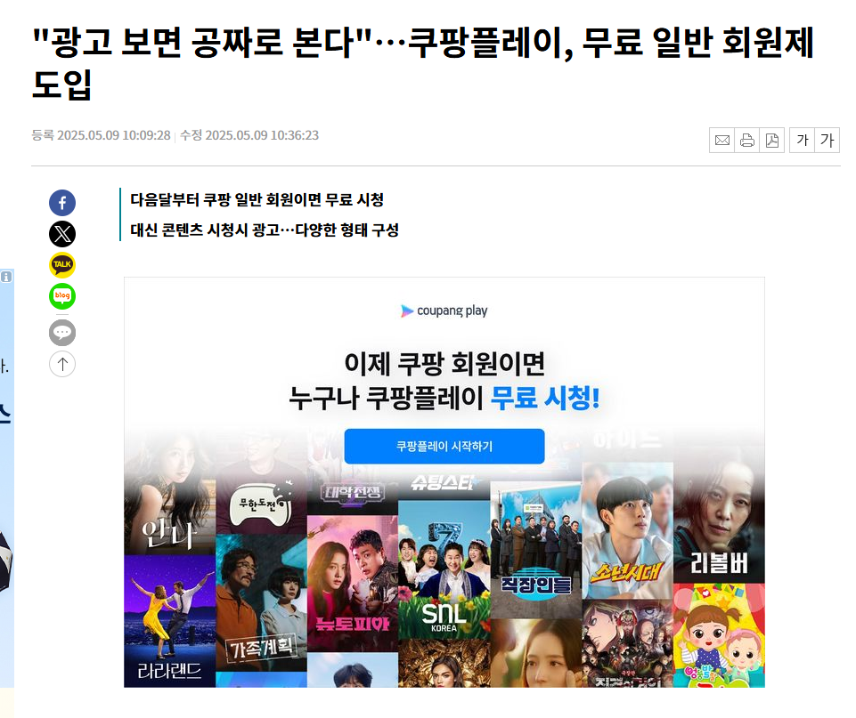 🆕 쿠팡플레이 무료 일반 회원제의 핵심은 ‘접근성’