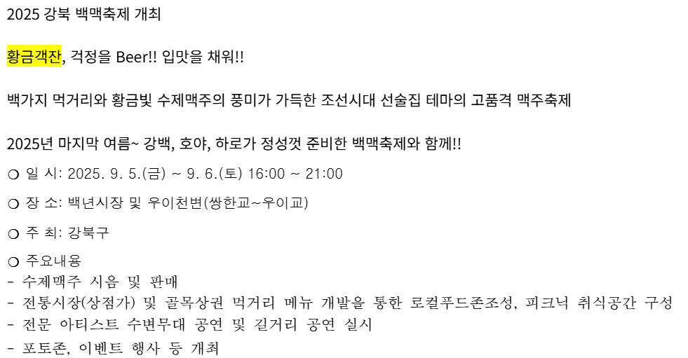 1. 2025 강북 백맥축제 일정