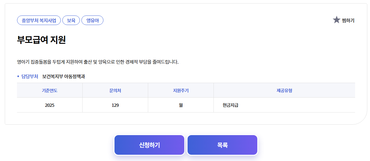 - 오픈: 복지로 웹·앱 → 영유아 → 부모급여