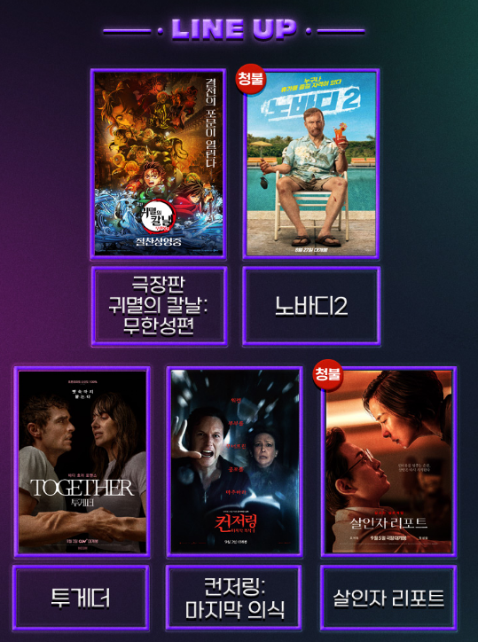 라인업은 지점/상영 시간표에 따라 일부 편성이 달라질 수 있으니 CGV 앱/홈페이지 상영시간으로 최종 확인하세요.