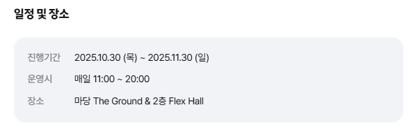 - 기간: 2025년 10월 30일(목) ~ 11월 30일(일), 한 달 간 운영.