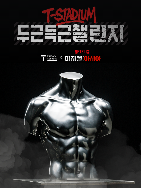 넷플릭스 화제작〈피지컬: 아시아〉의 열기를 그대로 옮겨 놓은 체험형 팝업 전시가 서울 성수동 T팩토리 성수에서 시작됐습니다. 이름하여 ‘T-스타디움 두근득근 챌린지’.